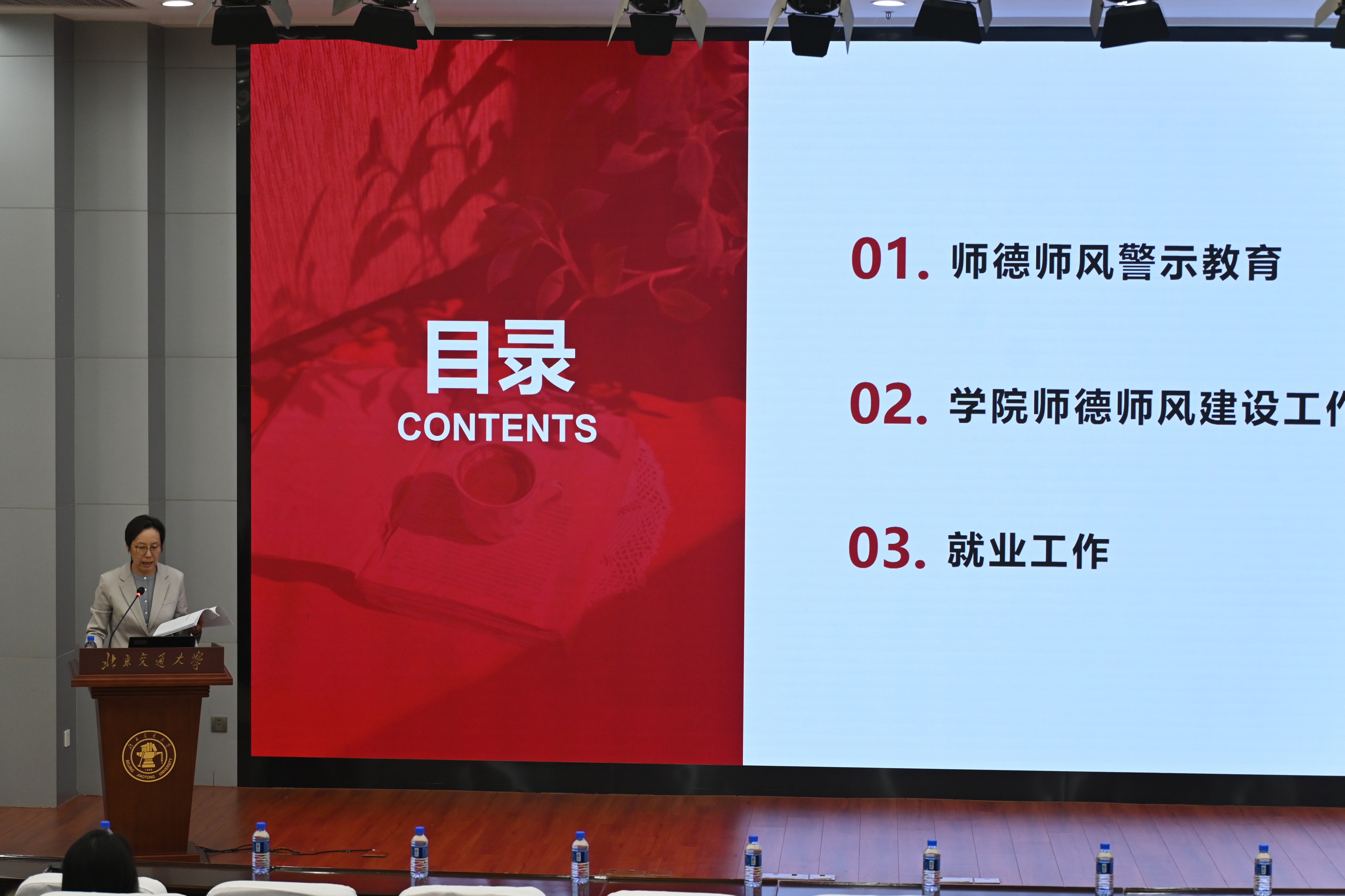 孙冬梅书记做师德师风警示教育并通报学生就业情况,动员各系所和全体老师关心关爱学生、深挖就业资源、做好就业攻坚。