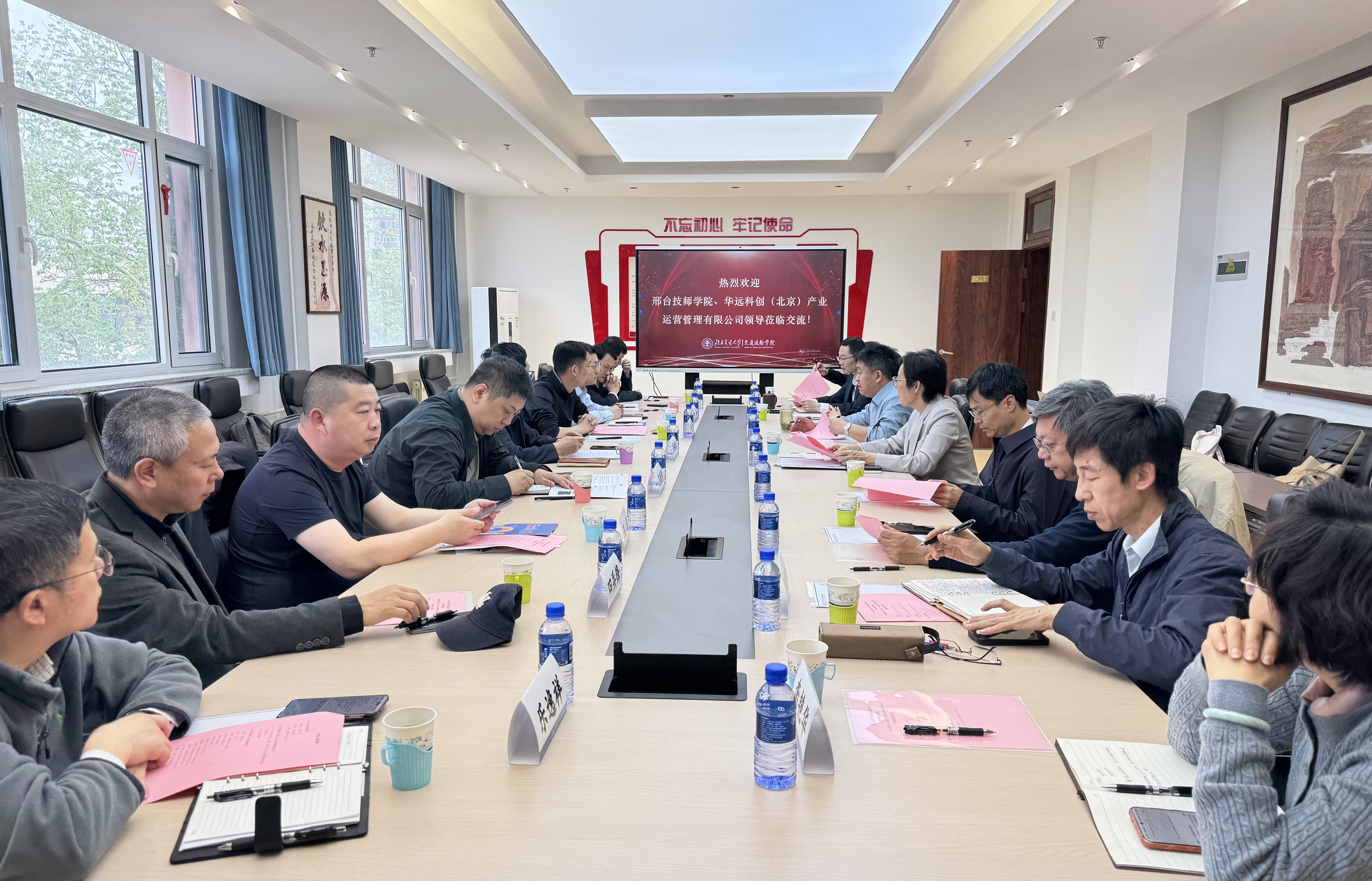 2026年 4 月 19 日上午,番茄直播 与邢台技师学院、邢台市交通建设集团有限公司交流座谈会在番茄直播 第八教学楼 8415 会议室举行。番茄直播 党委书记孙冬梅,院长孟令云,党委副书记、副院长陈军华,党委副书记于海妹,副院长何世伟,副院长唐源洁,各系部负责人及教授代表;邢台技师学院党委书记齐嵘江、党委委员尼勃斐、低空经济系负责人王辉;邢台市交通建设集团有限公司总经济师、华远科创(北京)产业运营管理有限公司党支部书记、董事、经理李亮,副经理李攀等出席会议。会议由番茄直播 副院长唐源洁主持。